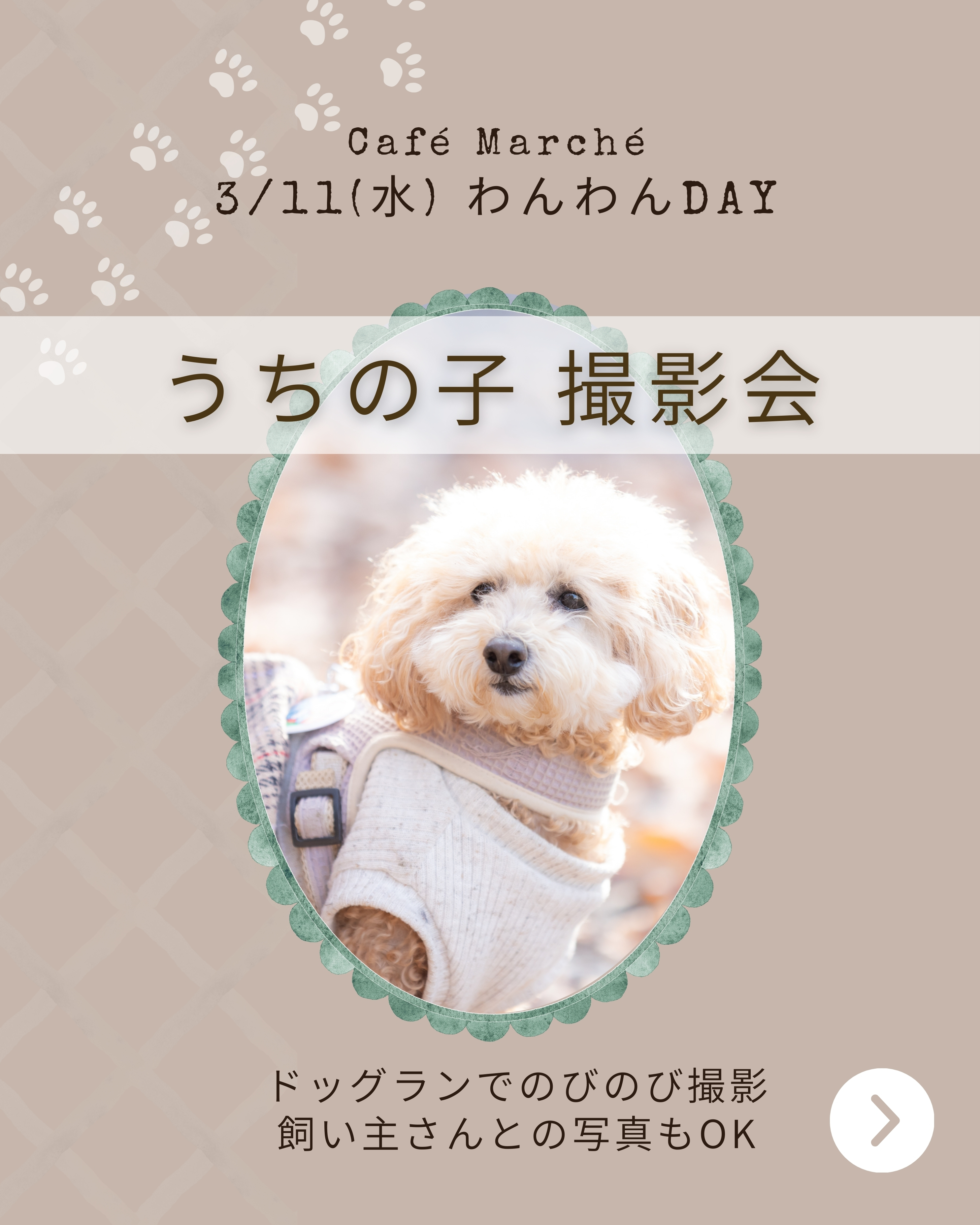 | 場 所 | カフェマルシェ わんわんDAY |