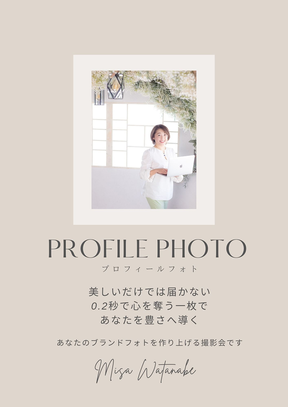 私、渡辺美沙が、「写真で⾒える愛の時間」「写真の価値と営業戦略」という2本立てのテーマで講演します。